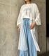 トップは柔らかとろみのあるジョーゼット素材、ボトムはほんのり透け感のあるチュールで切り替えた 軽やかで動きのあるシルエットが魅力の一着。