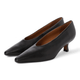 甲を押さえる深めのカットが特徴的なポインテッドトウパンプスは、シンプルなデザインでデイリーに活躍してくれる一足。