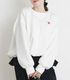 クルーネックのすっきり感に、左胸の小さなハートワッペンがさりげない甘さをプラス。